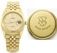 Der erste ist der von Bundeskanzler Konrad Adenauer.Dies ist eine goldene Rolex Oyster Perpetual, die 1955 dem deutschen Bundeskanzler angeboten wurde.